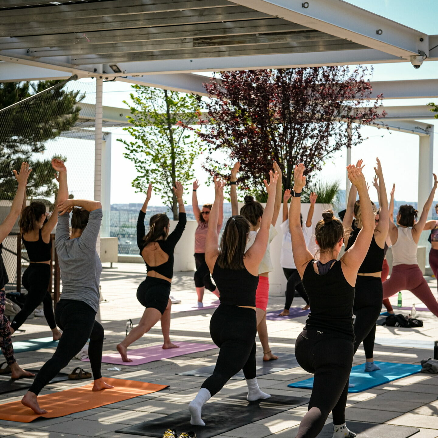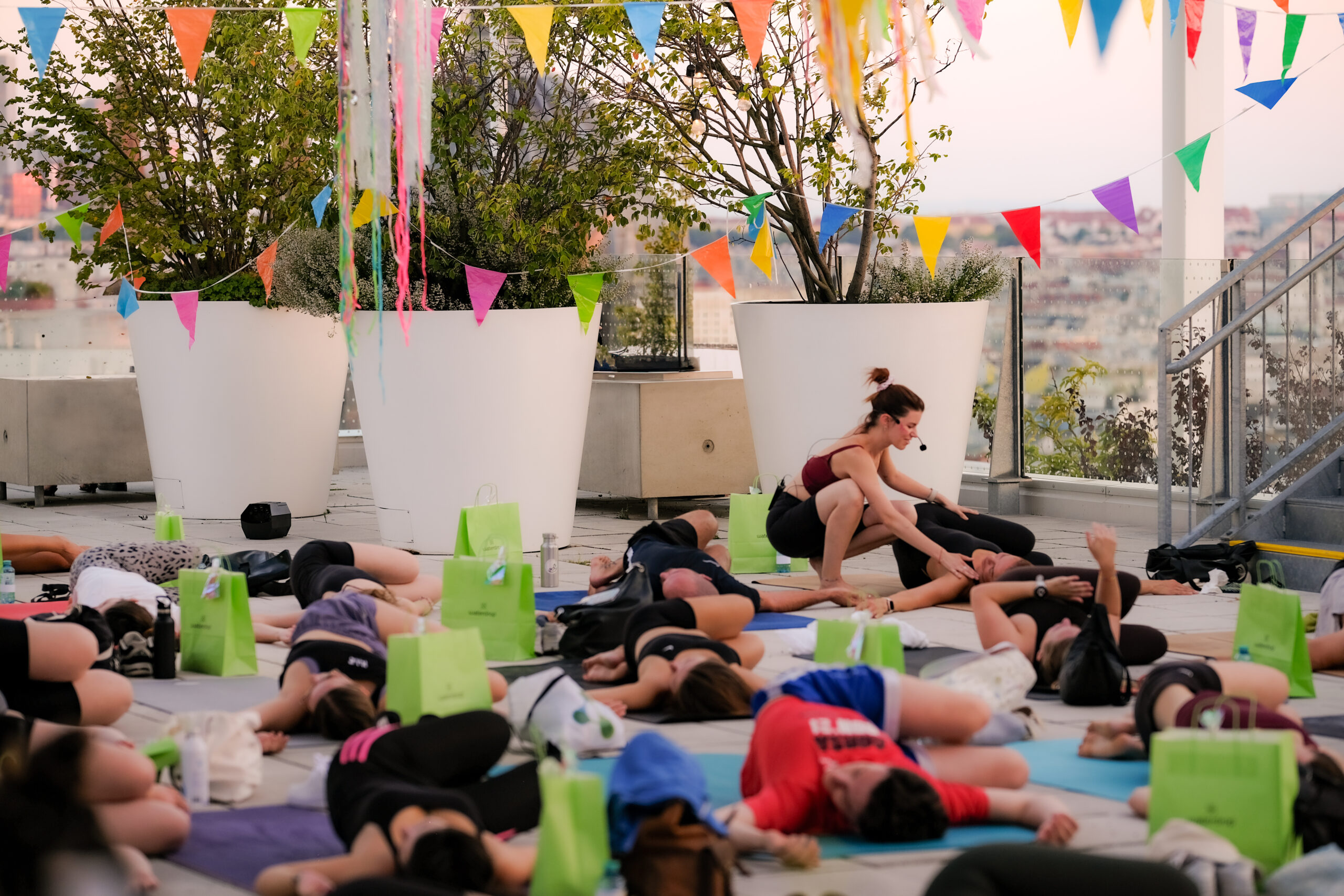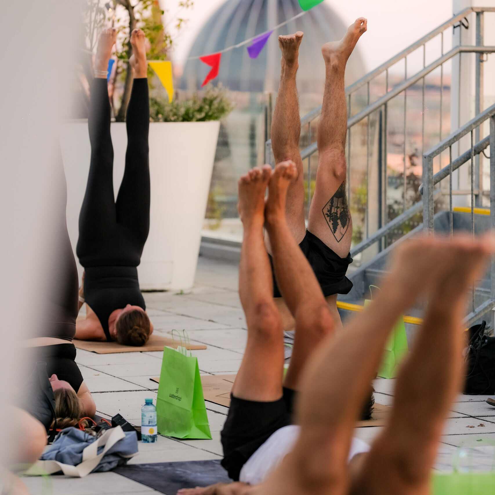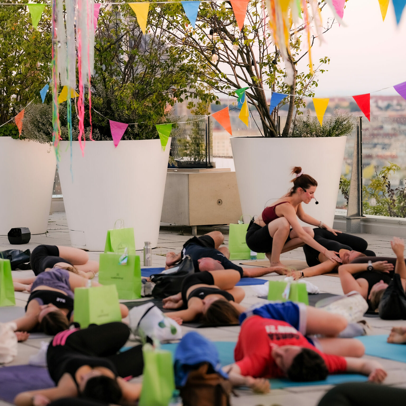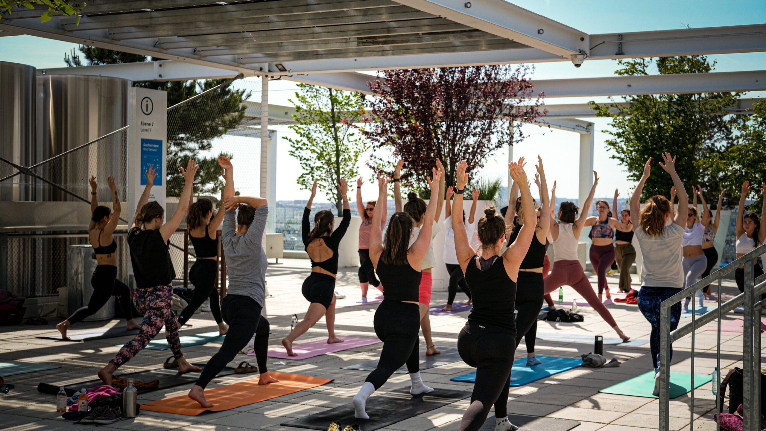 Erlebe einzigartige Yoga & Pilates Events in Wien – mal mit DJ-Beats und Glitzer, mal beim stimmungsvollen Sunset-Flow über den Dächern der Stadt.